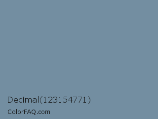 Decimal 123154771 Color is a normal blue color and the nearest color is Shadow Blue #778ba5. Hex code #738ea1 and RGB value is rgb(115,142,161). In RGB color space, this color is composed of 45% red, 56% green, 63% blue, In CMYK color space, this color is composed of 29% cyan, 12% magenta, 0% yellow , 37% black , In HSL color space, this color has a hue angle of 205° , 20% saturation and 54% lightness.