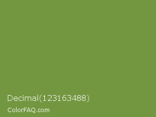 Decimal 123163488 Color is a normal green color and the nearest color is Palm Leaf #6f9940. Hex code #739740 and RGB value is rgb(115,151,64). In RGB color space, this color is composed of 45% red, 59% green, 25% blue, In CMYK color space, this color is composed of 24% cyan, 0% magenta, 58% yellow , 41% black , In HSL color space, this color has a hue angle of 85° , 40% saturation and 42% lightness.