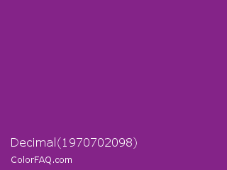Decimal 1970702098 Color is a normal magenta color and the nearest color is Seance #731e8f. Hex code #842388 and RGB value is rgb(132,35,136). In RGB color space, this color is composed of 52% red, 14% green, 53% blue, In CMYK color space, this color is composed of 3% cyan, 74% magenta, 0% yellow , 47% black , In HSL color space, this color has a hue angle of 298° , 59% saturation and 34% lightness.