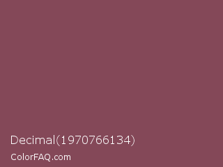 Decimal 1970766134 Color is a normal rose color and the nearest color is Deep Ruby #843f5b. Hex code #844858 and RGB value is rgb(132,72,88). In RGB color space, this color is composed of 52% red, 28% green, 35% blue, In CMYK color space, this color is composed of 0% cyan, 45% magenta, 33% yellow , 48% black , In HSL color space, this color has a hue angle of 344° , 29% saturation and 40% lightness.