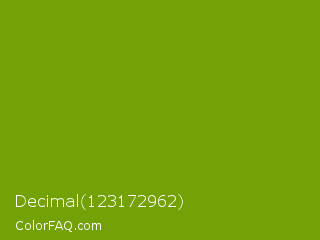 Decimal 123172962 Color is a normal lime color and the nearest color is Limeade #6f9d02. Hex code #73a106 and RGB value is rgb(115,161,6). In RGB color space, this color is composed of 45% red, 63% green, 2% blue, In CMYK color space, this color is composed of 29% cyan, 0% magenta, 96% yellow , 37% black , In HSL color space, this color has a hue angle of 78° , 93% saturation and 33% lightness.