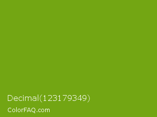Decimal 123179349 Color is a normal green color and the nearest color is Christi #67a712. Hex code #73a613 and RGB value is rgb(115,166,19). In RGB color space, this color is composed of 45% red, 65% green, 7% blue, In CMYK color space, this color is composed of 31% cyan, 0% magenta, 89% yellow , 35% black , In HSL color space, this color has a hue angle of 81° , 79% saturation and 36% lightness.