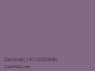 Decimal 1971656968 Color is a normal magenta color and the nearest color is Chinese Violet #856088. Hex code #856884 and RGB value is rgb(133,104,132). In RGB color space, this color is composed of 52% red, 41% green, 52% blue, In CMYK color space, this color is composed of 0% cyan, 22% magenta, 1% yellow , 48% black , In HSL color space, this color has a hue angle of 302° , 12% saturation and 46% lightness.