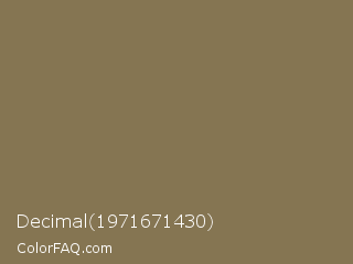 Decimal 1971671430 Color is a normal orange color and the nearest color is Gold Fusion #85754e. Hex code #857552 and RGB value is rgb(133,117,82). In RGB color space, this color is composed of 52% red, 46% green, 32% blue, In CMYK color space, this color is composed of 0% cyan, 12% magenta, 38% yellow , 48% black , In HSL color space, this color has a hue angle of 41° , 24% saturation and 42% lightness.