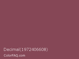 Decimal 1972406608 Color is a normal red color and the nearest color is Deep Ruby #843f5b. Hex code #864756 and RGB value is rgb(134,71,86). In RGB color space, this color is composed of 53% red, 28% green, 34% blue, In CMYK color space, this color is composed of 0% cyan, 47% magenta, 36% yellow , 47% black , In HSL color space, this color has a hue angle of 346° , 31% saturation and 40% lightness.