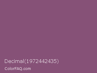 Decimal 1972442435 Color is a normal magenta color and the nearest color is Sugar Plum #914e75. Hex code #865177 and RGB value is rgb(134,81,119). In RGB color space, this color is composed of 53% red, 32% green, 47% blue, In CMYK color space, this color is composed of 0% cyan, 40% magenta, 11% yellow , 47% black , In HSL color space, this color has a hue angle of 317° , 25% saturation and 42% lightness.