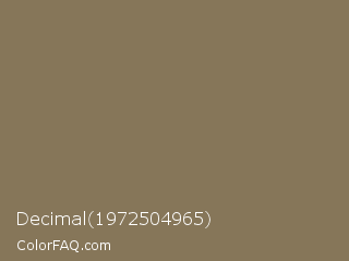 Decimal 1972504965 Color is a normal orange color and the nearest color is Shadow #8a795d. Hex code #867659 and RGB value is rgb(134,118,89). In RGB color space, this color is composed of 53% red, 46% green, 35% blue, In CMYK color space, this color is composed of 0% cyan, 12% magenta, 34% yellow , 47% black , In HSL color space, this color has a hue angle of 39° , 20% saturation and 44% lightness.