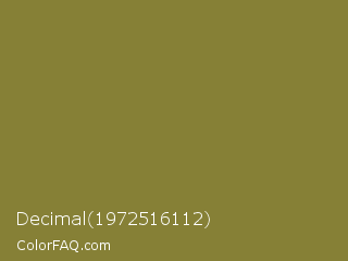 Decimal 1972516112 Color is a normal yellow color and the nearest color is Old Moss Green #867e36. Hex code #868036 and RGB value is rgb(134,128,54). In RGB color space, this color is composed of 53% red, 50% green, 21% blue, In CMYK color space, this color is composed of 0% cyan, 4% magenta, 60% yellow , 47% black , In HSL color space, this color has a hue angle of 56° , 43% saturation and 37% lightness.