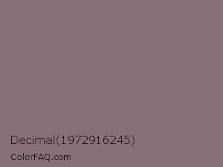 Decimal 1972916245 Color is a normal rose color and the nearest color is Empress #817377. Hex code #877077 and RGB value is rgb(135,112,119). In RGB color space, this color is composed of 53% red, 44% green, 47% blue, In CMYK color space, this color is composed of 0% cyan, 17% magenta, 12% yellow , 47% black , In HSL color space, this color has a hue angle of 342° , 9% saturation and 48% lightness.