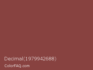 Decimal 1979942688 Color is a normal red color and the nearest color is Cordovan #893f45. Hex code #884240 and RGB value is rgb(136,66,64). In RGB color space, this color is composed of 53% red, 26% green, 25% blue, In CMYK color space, this color is composed of 0% cyan, 51% magenta, 53% yellow , 47% black , In HSL color space, this color has a hue angle of 2° , 36% saturation and 39% lightness.