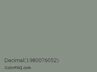 Decimal 1980076052 Color is a normal green color and the nearest color is Stack #8a8f8a. Hex code #889186 and RGB value is rgb(136,145,134). In RGB color space, this color is composed of 53% red, 57% green, 53% blue, In CMYK color space, this color is composed of 6% cyan, 0% magenta, 8% yellow , 43% black , In HSL color space, this color has a hue angle of 109° , 5% saturation and 55% lightness.