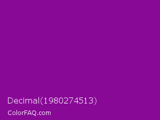 Decimal 1980274513 Color is a normal magenta color and the nearest color is Dark Magenta #8b008b. Hex code #890997 and RGB value is rgb(137,9,151). In RGB color space, this color is composed of 54% red, 4% green, 59% blue, In CMYK color space, this color is composed of 9% cyan, 94% magenta, 0% yellow , 41% black , In HSL color space, this color has a hue angle of 294° , 89% saturation and 31% lightness.