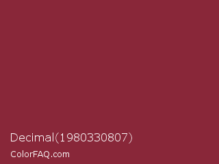 Decimal 1980330807 Color is a normal red color and the nearest color is Antique Ruby #841b2d. Hex code #892739 and RGB value is rgb(137,39,57). In RGB color space, this color is composed of 54% red, 15% green, 22% blue, In CMYK color space, this color is composed of 0% cyan, 72% magenta, 58% yellow , 46% black , In HSL color space, this color has a hue angle of 349° , 56% saturation and 35% lightness.