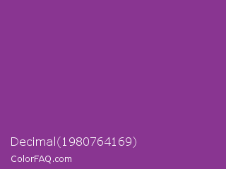 Decimal 1980764169 Color is a normal magenta color and the nearest color is Vivid Violet #803790. Hex code #893591 and RGB value is rgb(137,53,145). In RGB color space, this color is composed of 54% red, 21% green, 57% blue, In CMYK color space, this color is composed of 6% cyan, 63% magenta, 0% yellow , 43% black , In HSL color space, this color has a hue angle of 295° , 46% saturation and 39% lightness.