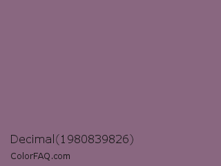 Decimal 1980839826 Color is a normal magenta color and the nearest color is Chinese Violet #856088. Hex code #896780 and RGB value is rgb(137,103,128). In RGB color space, this color is composed of 54% red, 40% green, 50% blue, In CMYK color space, this color is composed of 0% cyan, 25% magenta, 7% yellow , 46% black , In HSL color space, this color has a hue angle of 316° , 14% saturation and 47% lightness.