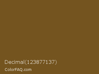 Decimal 123877137 Color is a dark orange color and the nearest color is Field Drab #6c541e. Hex code #74541f and RGB value is rgb(116,84,31). In RGB color space, this color is composed of 45% red, 33% green, 12% blue, In CMYK color space, this color is composed of 0% cyan, 28% magenta, 73% yellow , 55% black , In HSL color space, this color has a hue angle of 37° , 58% saturation and 29% lightness.
