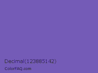 Decimal 123885142 Color is a normal indigo color and the nearest color is Fuchsia Blue #7a58c1. Hex code #745bb8 and RGB value is rgb(116,91,184). In RGB color space, this color is composed of 45% red, 36% green, 72% blue, In CMYK color space, this color is composed of 37% cyan, 51% magenta, 0% yellow , 28% black , In HSL color space, this color has a hue angle of 256° , 40% saturation and 54% lightness.