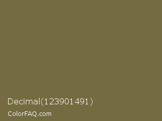 Decimal 123901491 Color is a normal yellow color and the nearest color is Yellow Metal #716338. Hex code #746b41 and RGB value is rgb(116,107,65). In RGB color space, this color is composed of 45% red, 42% green, 25% blue, In CMYK color space, this color is composed of 0% cyan, 8% magenta, 44% yellow , 55% black , In HSL color space, this color has a hue angle of 49° , 28% saturation and 35% lightness.