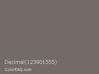 Decimal 123901555 Color is a normal red color and the nearest color is Dove Gray #6d6c6c. Hex code #746b69 and RGB value is rgb(116,107,105). In RGB color space, this color is composed of 45% red, 42% green, 41% blue, In CMYK color space, this color is composed of 0% cyan, 8% magenta, 9% yellow , 55% black , In HSL color space, this color has a hue angle of 11° , 5% saturation and 43% lightness.