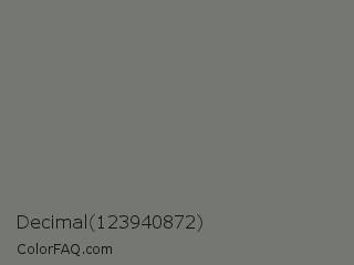 Decimal 123940872 Color is a normal green color and the nearest color is Nickel #727472. Hex code #747870 and RGB value is rgb(116,120,112). In RGB color space, this color is composed of 45% red, 47% green, 44% blue, In CMYK color space, this color is composed of 3% cyan, 0% magenta, 7% yellow , 53% black , In HSL color space, this color has a hue angle of 90° , 3% saturation and 45% lightness.