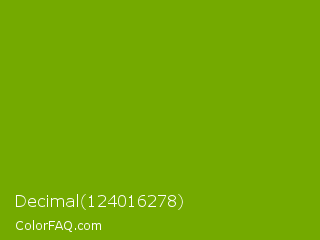 Decimal 124016278 Color is a normal lime color and the nearest color is Limeade #6f9d02. Hex code #74aa00 and RGB value is rgb(116,170,0). In RGB color space, this color is composed of 45% red, 67% green, 0% blue, In CMYK color space, this color is composed of 32% cyan, 0% magenta, 100% yellow , 33% black , In HSL color space, this color has a hue angle of 79° , 100% saturation and 33% lightness.