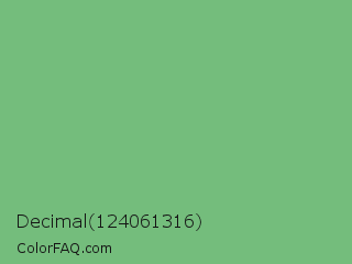 Decimal 124061316 Color is a normal green color and the nearest color is Iguana Green #71bc78. Hex code #74bd7c and RGB value is rgb(116,189,124). In RGB color space, this color is composed of 45% red, 74% green, 49% blue, In CMYK color space, this color is composed of 39% cyan, 0% magenta, 34% yellow , 26% black , In HSL color space, this color has a hue angle of 127° , 36% saturation and 60% lightness.