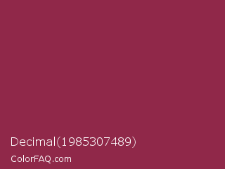 Decimal 1985307489 Color is a normal rose color and the nearest color is Big Dip O Ruby #9c2542. Hex code #902849 and RGB value is rgb(144,40,73). In RGB color space, this color is composed of 56% red, 16% green, 29% blue, In CMYK color space, this color is composed of 0% cyan, 72% magenta, 49% yellow , 44% black , In HSL color space, this color has a hue angle of 341° , 57% saturation and 36% lightness.
