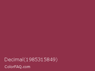 Decimal 1985315849 Color is a normal rose color and the nearest color is Solid Pink #893843. Hex code #903049 and RGB value is rgb(144,48,73). In RGB color space, this color is composed of 56% red, 19% green, 29% blue, In CMYK color space, this color is composed of 0% cyan, 67% magenta, 49% yellow , 44% black , In HSL color space, this color has a hue angle of 344° , 50% saturation and 38% lightness.