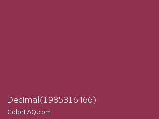 Decimal 1985316466 Color is a normal rose color and the nearest color is Camelot #893456. Hex code #903150 and RGB value is rgb(144,49,80). In RGB color space, this color is composed of 56% red, 19% green, 31% blue, In CMYK color space, this color is composed of 0% cyan, 66% magenta, 44% yellow , 44% black , In HSL color space, this color has a hue angle of 340° , 49% saturation and 38% lightness.