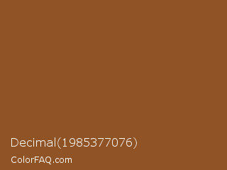 Decimal 1985377076 Color is a normal orange color and the nearest color is Rope #8e4d1e. Hex code #905326 and RGB value is rgb(144,83,38). In RGB color space, this color is composed of 56% red, 33% green, 15% blue, In CMYK color space, this color is composed of 0% cyan, 42% magenta, 74% yellow , 44% black , In HSL color space, this color has a hue angle of 25° , 58% saturation and 36% lightness.