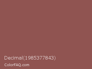 Decimal 1985377843 Color is a normal red color and the nearest color is Spicy Mix #8b5f4d. Hex code #905451 and RGB value is rgb(144,84,81). In RGB color space, this color is composed of 56% red, 33% green, 32% blue, In CMYK color space, this color is composed of 0% cyan, 42% magenta, 44% yellow , 44% black , In HSL color space, this color has a hue angle of 3° , 28% saturation and 44% lightness.