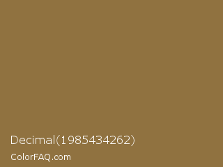 Decimal 1985434262 Color is a normal orange color and the nearest color is Metallic Sunburst #9c7c38. Hex code #907240 and RGB value is rgb(144,114,64). In RGB color space, this color is composed of 56% red, 45% green, 25% blue, In CMYK color space, this color is composed of 0% cyan, 21% magenta, 56% yellow , 44% black , In HSL color space, this color has a hue angle of 38° , 38% saturation and 41% lightness.