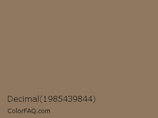 Decimal 1985439844 Color is a normal orange color and the nearest color is Domino #8e775e. Hex code #907860 and RGB value is rgb(144,120,96). In RGB color space, this color is composed of 56% red, 47% green, 38% blue, In CMYK color space, this color is composed of 0% cyan, 17% magenta, 33% yellow , 44% black , In HSL color space, this color has a hue angle of 30° , 20% saturation and 47% lightness.