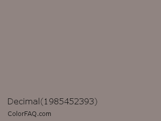 Decimal 1985452393 Color is a normal red color and the nearest color is Natural Gray #8b8680. Hex code #908481 and RGB value is rgb(144,132,129). In RGB color space, this color is composed of 56% red, 52% green, 51% blue, In CMYK color space, this color is composed of 0% cyan, 8% magenta, 10% yellow , 44% black , In HSL color space, this color has a hue angle of 12° , 6% saturation and 54% lightness.