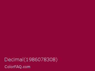 Decimal 1986078308 Color is a dark rose color and the nearest color is Pink Raspberry #980036. Hex code #910438 and RGB value is rgb(145,4,56). In RGB color space, this color is composed of 57% red, 2% green, 22% blue, In CMYK color space, this color is composed of 0% cyan, 97% magenta, 61% yellow , 43% black , In HSL color space, this color has a hue angle of 338° , 95% saturation and 29% lightness.