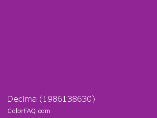 Decimal 1986138630 Color is a normal magenta color and the nearest color is Violet Eggplant #991199. Hex code #912596 and RGB value is rgb(145,37,150). In RGB color space, this color is composed of 57% red, 15% green, 59% blue, In CMYK color space, this color is composed of 3% cyan, 75% magenta, 0% yellow , 41% black , In HSL color space, this color has a hue angle of 297° , 60% saturation and 37% lightness.