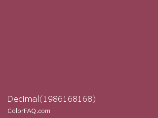 Decimal 1986168168 Color is a normal rose color and the nearest color is Quinacridone Magenta #8e3a59. Hex code #914258 and RGB value is rgb(145,66,88). In RGB color space, this color is composed of 57% red, 26% green, 35% blue, In CMYK color space, this color is composed of 0% cyan, 54% magenta, 39% yellow , 43% black , In HSL color space, this color has a hue angle of 343° , 37% saturation and 41% lightness.