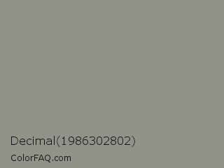 Decimal 1986302802 Color is a normal lime color and the nearest color is Stack #8a8f8a. Hex code #919388 and RGB value is rgb(145,147,136). In RGB color space, this color is composed of 57% red, 58% green, 53% blue, In CMYK color space, this color is composed of 1% cyan, 0% magenta, 7% yellow , 42% black , In HSL color space, this color has a hue angle of 71° , 5% saturation and 55% lightness.