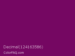 Decimal 124163586 Color is a dark magenta color and the nearest color is French Plum #811453. Hex code #750762 and RGB value is rgb(117,7,98). In RGB color space, this color is composed of 46% red, 3% green, 38% blue, In CMYK color space, this color is composed of 0% cyan, 94% magenta, 16% yellow , 54% black , In HSL color space, this color has a hue angle of 310° , 89% saturation and 24% lightness.