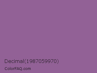 Decimal 1987059970 Color is a normal magenta color and the nearest color is Trendy Pink #8c6495. Hex code #926196 and RGB value is rgb(146,97,150). In RGB color space, this color is composed of 57% red, 38% green, 59% blue, In CMYK color space, this color is composed of 3% cyan, 35% magenta, 0% yellow , 41% black , In HSL color space, this color has a hue angle of 295° , 21% saturation and 48% lightness.