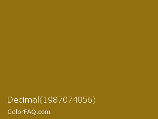 Decimal 1987074056 Color is a normal orange color and the nearest color is Sand Dune #967117. Hex code #927010 and RGB value is rgb(146,112,16). In RGB color space, this color is composed of 57% red, 44% green, 6% blue, In CMYK color space, this color is composed of 0% cyan, 23% magenta, 89% yellow , 43% black , In HSL color space, this color has a hue angle of 44° , 80% saturation and 32% lightness.