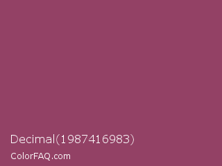 Decimal 1987416983 Color is a normal rose color and the nearest color is Vin Rouge #983d61. Hex code #934165 and RGB value is rgb(147,65,101). In RGB color space, this color is composed of 58% red, 25% green, 40% blue, In CMYK color space, this color is composed of 0% cyan, 56% magenta, 31% yellow , 42% black , In HSL color space, this color has a hue angle of 334° , 39% saturation and 42% lightness.