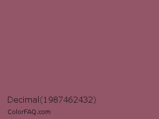 Decimal 1987462432 Color is a normal rose color and the nearest color is Mauve Taupe #915f6d. Hex code #935568 and RGB value is rgb(147,85,104). In RGB color space, this color is composed of 58% red, 33% green, 41% blue, In CMYK color space, this color is composed of 0% cyan, 42% magenta, 29% yellow , 42% black , In HSL color space, this color has a hue angle of 342° , 27% saturation and 45% lightness.