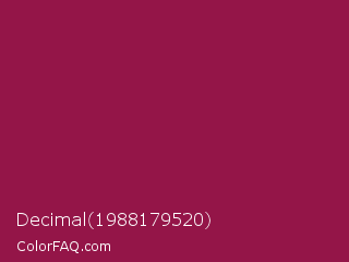 Decimal 1988179520 Color is a normal rose color and the nearest color is Disco #871550. Hex code #941548 and RGB value is rgb(148,21,72). In RGB color space, this color is composed of 58% red, 8% green, 28% blue, In CMYK color space, this color is composed of 0% cyan, 86% magenta, 51% yellow , 42% black , In HSL color space, this color has a hue angle of 336° , 75% saturation and 33% lightness.