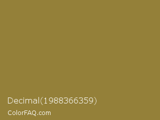 Decimal 1988366359 Color is a normal yellow color and the nearest color is Metallic Sunburst #9c7c38. Hex code #948039 and RGB value is rgb(148,128,57). In RGB color space, this color is composed of 58% red, 50% green, 22% blue, In CMYK color space, this color is composed of 0% cyan, 14% magenta, 61% yellow , 42% black , In HSL color space, this color has a hue angle of 47° , 44% saturation and 40% lightness.