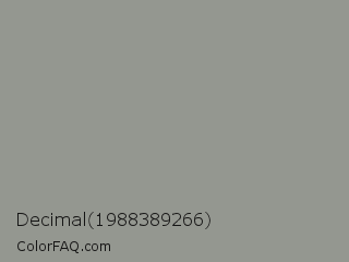 Decimal 1988389266 Color is a normal green color and the nearest color is Mountain Mist #959396. Hex code #949790 and RGB value is rgb(148,151,144). In RGB color space, this color is composed of 58% red, 59% green, 56% blue, In CMYK color space, this color is composed of 2% cyan, 0% magenta, 5% yellow , 41% black , In HSL color space, this color has a hue angle of 86° , 3% saturation and 58% lightness.