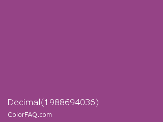 Decimal 1988694036 Color is a normal magenta color and the nearest color is Plum #8e4585. Hex code #954386 and RGB value is rgb(149,67,134). In RGB color space, this color is composed of 58% red, 26% green, 53% blue, In CMYK color space, this color is composed of 0% cyan, 55% magenta, 10% yellow , 42% black , In HSL color space, this color has a hue angle of 311° , 38% saturation and 42% lightness.