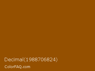 Decimal 1988706824 Color is a dark orange color and the nearest color is Brown #964b00. Hex code #955000 and RGB value is rgb(149,80,0). In RGB color space, this color is composed of 58% red, 31% green, 0% blue, In CMYK color space, this color is composed of 0% cyan, 46% magenta, 100% yellow , 42% black , In HSL color space, this color has a hue angle of 32° , 100% saturation and 29% lightness.