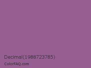 Decimal 1988723785 Color is a normal magenta color and the nearest color is Strikemaster #956387. Hex code #956091 and RGB value is rgb(149,96,145). In RGB color space, this color is composed of 58% red, 38% green, 57% blue, In CMYK color space, this color is composed of 0% cyan, 36% magenta, 3% yellow , 42% black , In HSL color space, this color has a hue angle of 305° , 22% saturation and 48% lightness.