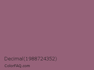 Decimal 1988724352 Color is a normal rose color and the nearest color is Mauve Taupe #915f6d. Hex code #956178 and RGB value is rgb(149,97,120). In RGB color space, this color is composed of 58% red, 38% green, 47% blue, In CMYK color space, this color is composed of 0% cyan, 35% magenta, 19% yellow , 42% black , In HSL color space, this color has a hue angle of 333° , 21% saturation and 48% lightness.